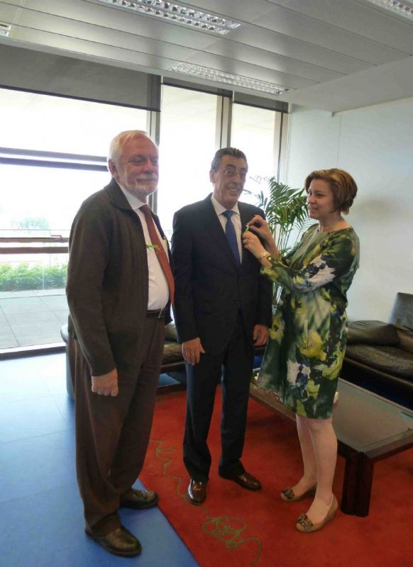Ambos representantes de la Asociación entregaron al delegado de la Junta la insignia que simboliza la lucha contra la enfermedad de Alzheimer, gesto que Bienvenido Mena agradeció; así mismo también expresó su disposición a colaborar con la asociación tanto desde la Junta de Castilla y León, institución a la que representa en la provincia, como personalmente.