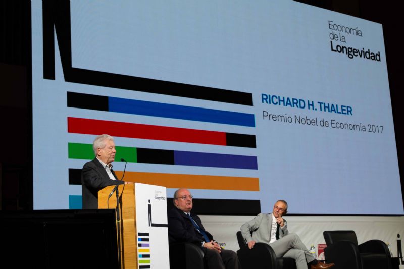 Durante este encuentro, Richard H. Thaler debatió con Diego Valero, presidente de Novaster, sobre las ventanas de oportunidad que abre la longevidad. Valero, presidente de Novaster, resaltó que 'los temas conductuales sobre el comportamiento están relacionados con las grandes tendencias que se asoman al presente: la cuarta revolución industrial, el advenimiento de la tecnología, el cambio climático y la evolución demográfica'. Por su parte, el Premio Nobel indicó que 'tenemos la capacidad real de moderar nuestro futuro. Lo que hemos aprendido -agregó- es que no podemos, simplemente, decir a la gente lo que tiene que hacer y es importante permitir que la gente puede seguir trabajando'.