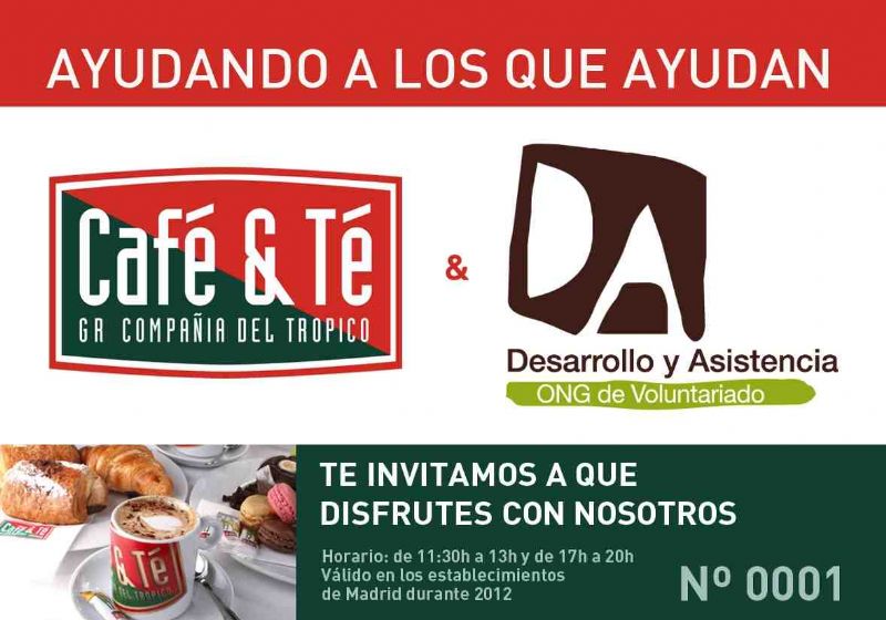 Ésta es la cuarta ocasión en la que Café & Té colabora con la ONG Desarrollo y Asistencia. En este sentido, el pasado 16 de enero la cadena de cafeterías donó a la ONG Desarrollo y Asistencia el 10% de la recaudación total de todos los establecimientos de la cadena en Madrid del día 22 de diciembre de 2011. En total se llegaron a recaudar 6.000 euros, dinero que fue destinado a programas de acompañamiento a mayores que están solos y a personas con discapacidad que lleva a cabo la ONG Desarrollo y Asistencia.