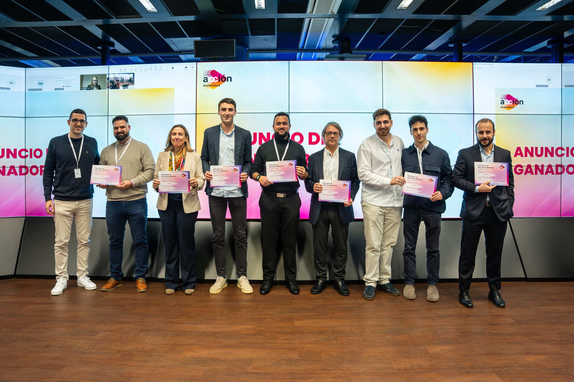 Algunos de los representantes de las soluciones ganadoras posan en el ‘Pitch Day’ organizado por AstraZeneca, Wayra y Kunsen.