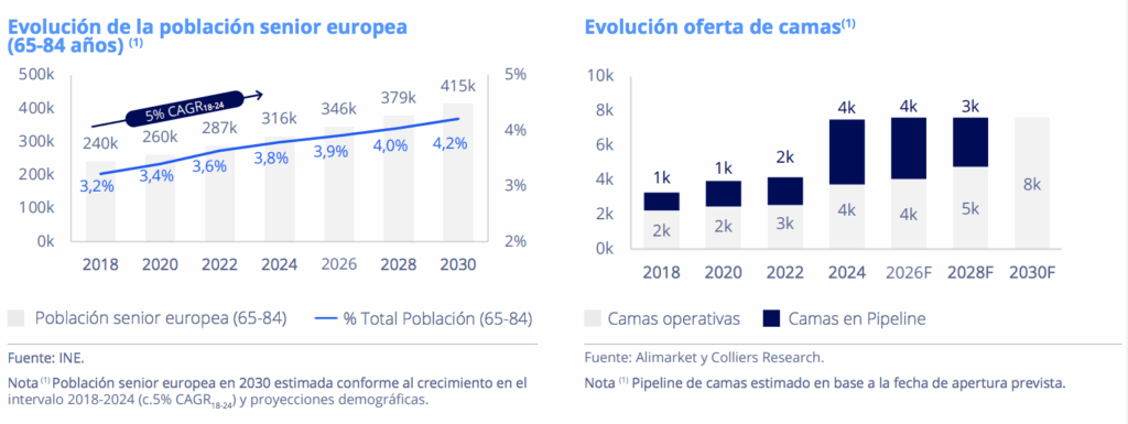 España duplicará su oferta de apartamentos de senior living para 2030, alcanzando los 8.000 apartamentos. Así lo apunta el Informe Healthcare en España (marzo 2025) de la consultora Colliers, que incide en que este crecimiento está impulsado por el aumento de la población sénior europea, que se prevé que pase de 316.000 habitantes en 2024 a 415.000 en cinco años.