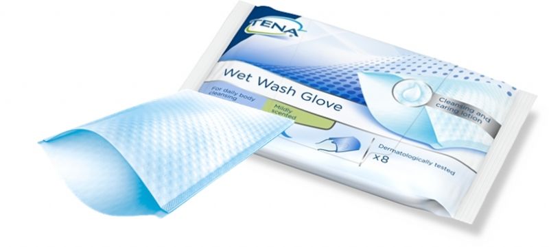 Tena Shampoo Cap es un gorro pre-humedecido con champú para el lavado del cabello. Para utilizarlo, basta con colocarlo en la cabeza del paciente y masajear suavemente durante aproximadamente 3 o 4 minutos para lograr un efecto de limpieza inmediato. Por otro lado, Tena Wet Wash Glove son unas manoplas húmedas impregnadas con una loción de limpieza para el aseo de todo el cuerpo de forma sencilla.