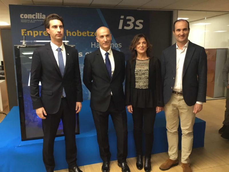 Beatriz Artolazabal asistió a la inauguración de los nuevos locales de la ingeniería 'i3s' en Bilbao, firma pionera en la promoción de medidas de conciliación laboral y familiar. Junto al director de i3s, Andoni Aranzamendi, la consejera se mostró convencida de que “los protocolos en materia de conciliación seguidos por las treinta empresas que este año participan en un nuevo plan piloto promovido por el Gobierno Vasco se mejora el clima laboral y se aumenta la productividad”.