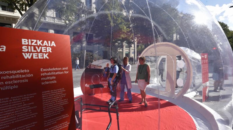 Y como telón de fondo, durante estos días, la Diputación Foral de Bizkaia muestra en dos espacios expositivos innovadores ubicados en calles de Bilbao algunas propuestas tecnológicas que se están presentando y dando a conocer estos días en los distintos eventos y foros enmarcados en la 'Bizkaia Silver Week'. Hasta el viernes, 28 de septiembre, dos cúpulas transparentes muestran a los viandantes un exoesqueleto empleado en terapias de rehabilitación y una plataforma pionera de rehabilitación virtual.