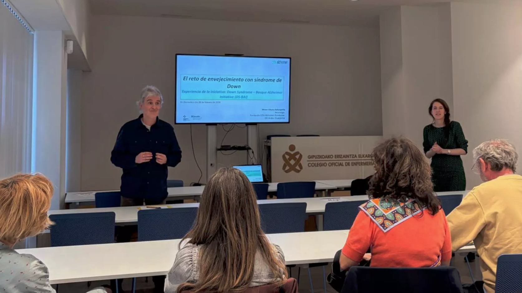 A finales del mes pasado, Zahartzaroa organizó una jornada, en Donostia, sobre el reto del envejecimiento con síndrome de Down, impartido por la doctora Miren Altuna, neuróloga del CITA-Alzheimer-Fundazio y de la ESI de Álava (Osakidetza), en el que presentó los avances de la iniciativa DS-BAI. Se trata de un proyecto que combina la atención clínica y la investigación en Euskadi, con seguimiento anual y análisis de biomarcadores, y que, en la actualidad, trata a más de 150 personas con este trastorno genético.