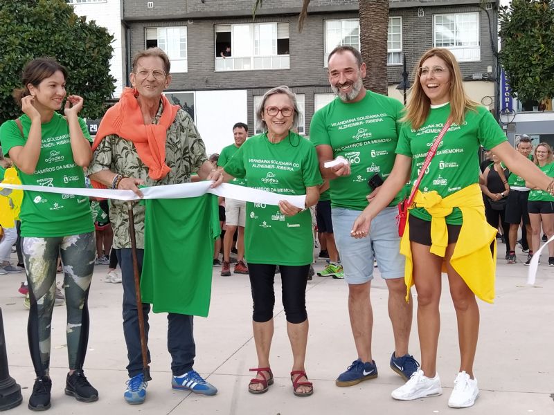 La entidad Agadea Alzheimer logró cumplir el objetivo de sensibilizar sobre esta dolencia con una una gran marea verde de caminantes. Una semana antes las plazas estaban completas y familias enteras se reunieron en Ribeira para recorrer los ocho kilómetros de la Andaina 'Os camiños da memoria'.
