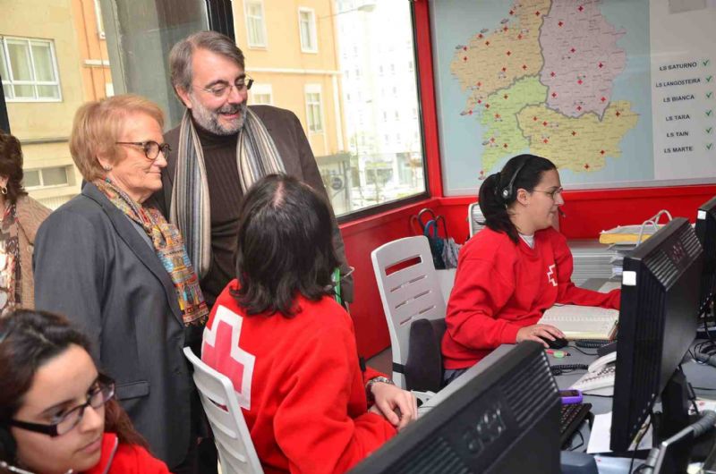 El presidente de la SGXX, Andrés Vázquez Piñeiro visitó con la presidenta de Cruz Roja Española en Galicia, Maria del Carmen Colmeiro el Centro de Coordinación en Galicia de Teleasistencia de la Cruz Roja para conocer la labor de este servicio