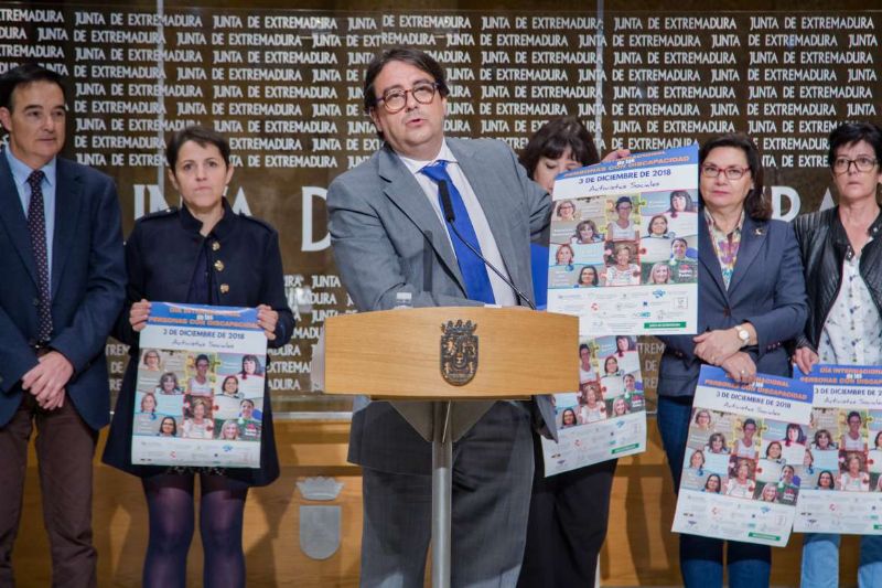 El consejero de Sanidad y Políticas Sociales, José María Vergeles, presentó, en Mérida, las actividades del Día Internacional de las Personas con Discapacidad, que se celebra el 3 de diciembre con el eslogan 'El Activismo Social', así como el cartel que sirve de base de la campaña en el que aparecen las fotos de diez mujeres de Extremadura que son activistas sociales.