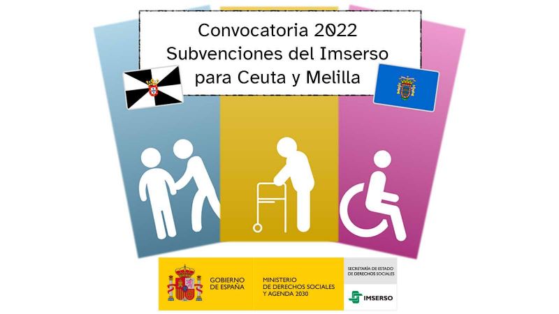 El Boletín Oficial del Estado publicó el 12 de julio, el extracto de la Resolución de 21 de junio de 2022, del Instituto de Mayores y Servicios Sociales (Imserso), por la que se convocan para el año 2022 las siguientes subvenciones para residentes en las Ciudades de Ceuta y de Melilla: Individuales a personas mayores y a entidades y organizaciones no gubernamentales de atención a las mismas; Individuales a personas con discapacidad y a entidades y organizaciones no gubernamentales de atención a las mismas; e Individuales a personas en situación de dependencia.