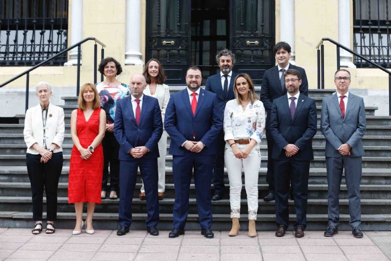 Barbón ha formado un gobierno paritario con diez consejerías que incluye un departamento de Ciencia, Innovación y Universidad y otro de Cultura. Juan Cofiño González será vicepresidente y consejero de Infraestructuras, Medio Ambiente y Cambio Climático y asumirá también la coordinación del Ejecutivo.
