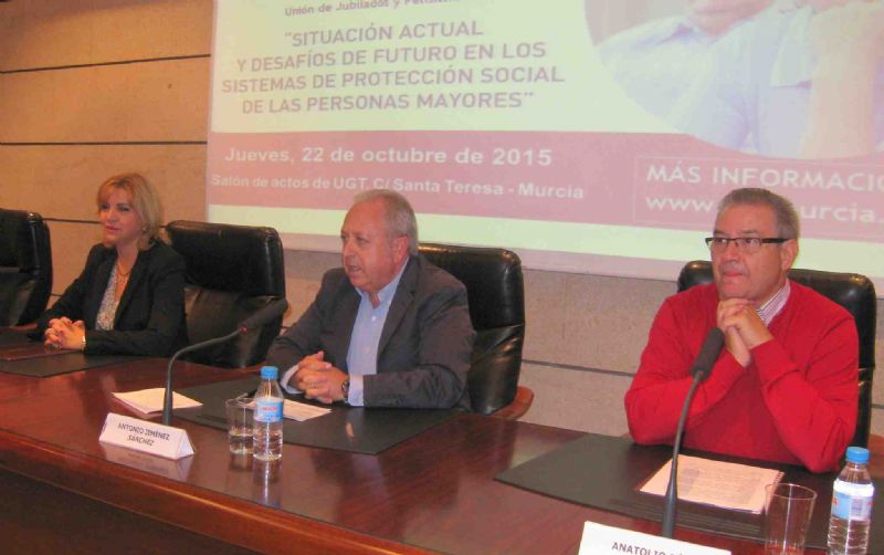 En la jornada, organizada con el objetivo de intentar evaluar la situación actual de los distintos sistemas de protección social dirigidos a personas mayores y su trascendencia en el ámbito de la Región de Murcia, participaron además distintos responsables políticos, de la administración pública y del sindicato.
