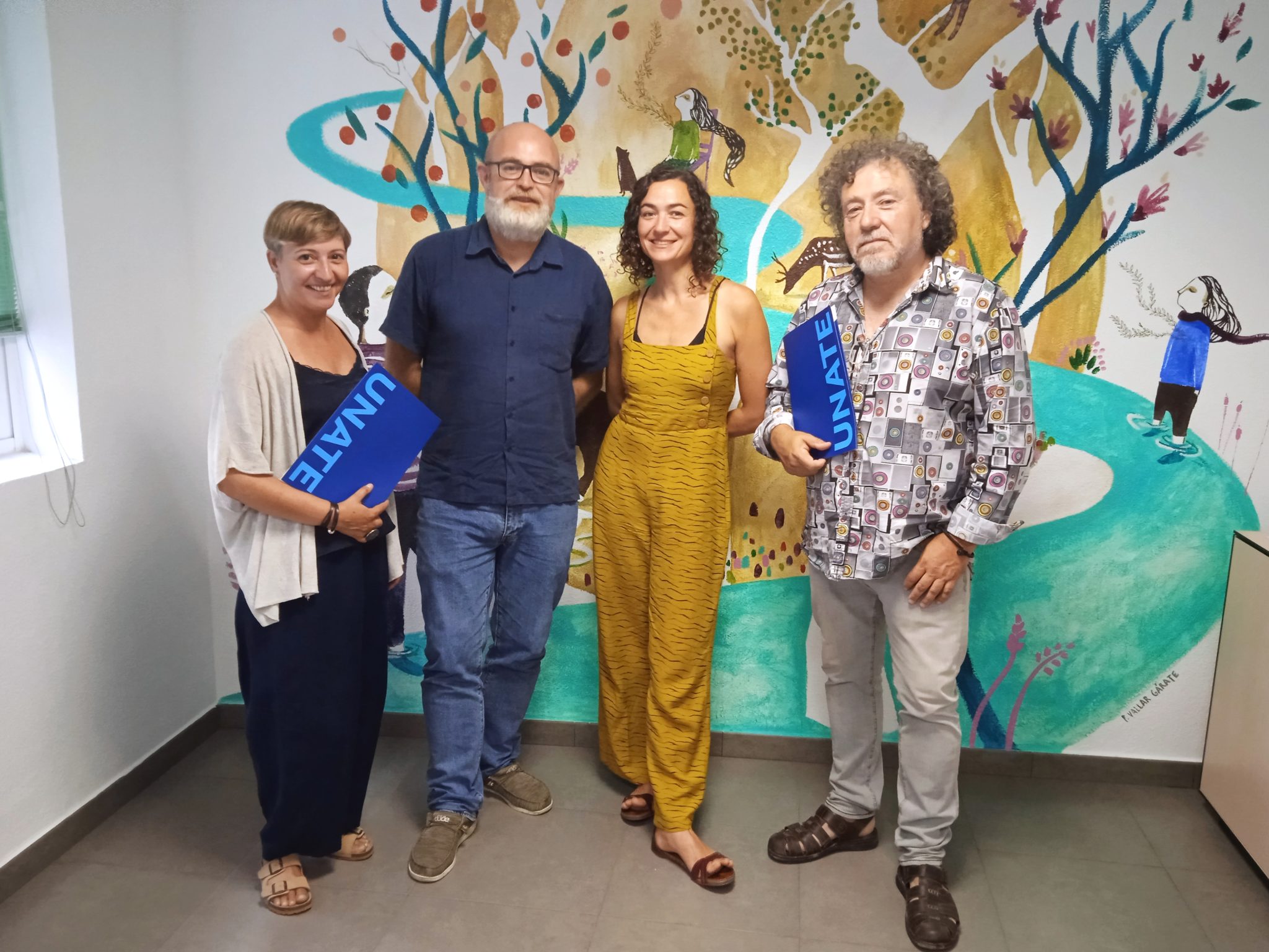 Francisco Gómez, como vicepresidente y coordinador general de Unate, firmó el convenio con los representantes de los tres espacios teatrales: Alicia Trueba (Café de la Artes), Esther Velategui (Escena Miriñaque) y Pati Domenech (La Teatrería de Ábrego).