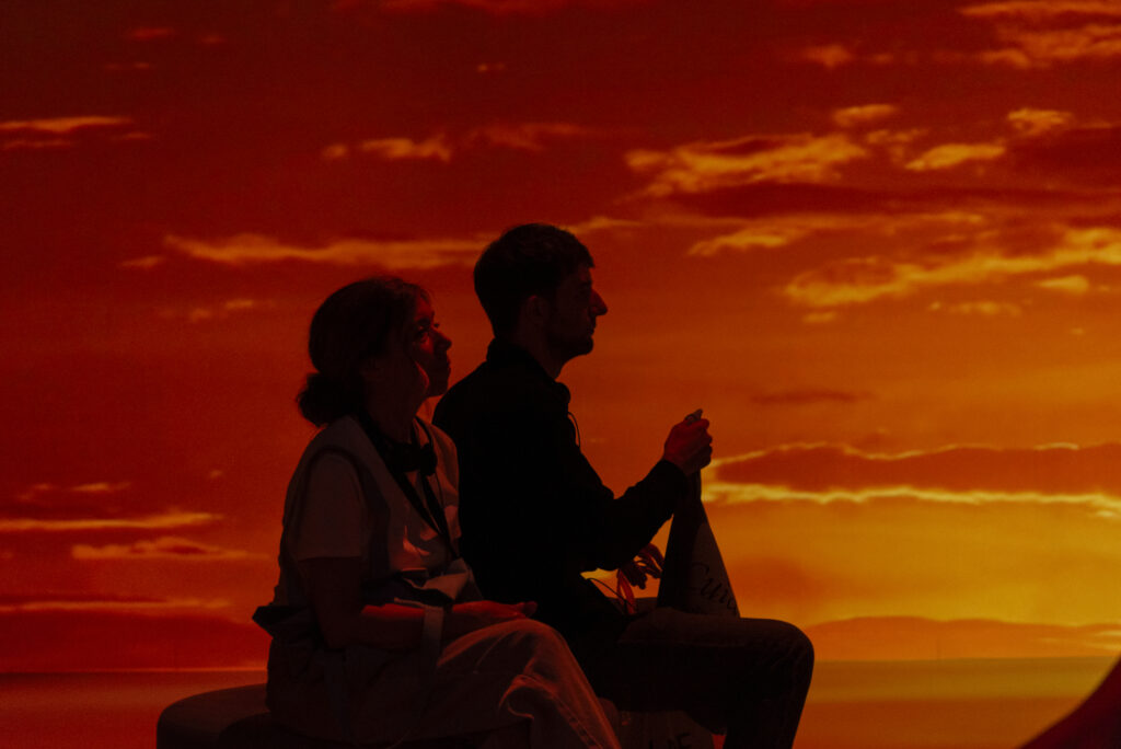 La silueta de dos personas sobre un atardecer de la exposición ‘Somos Naturaleza’. / FUNDACIÓN LA CAIXA