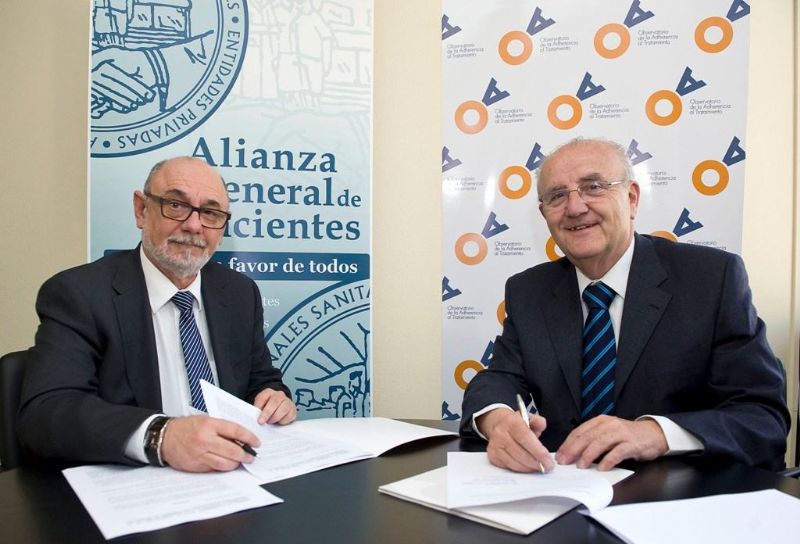 Los presidentes de la Alianza General de Pacientes y el Observatorio de la Adherencia al Tratamiento, Alejandro Toledo y José Manuel Ribera Casado, respectivamente, firmaron un acuerdo para hacer efectivo este proyecto